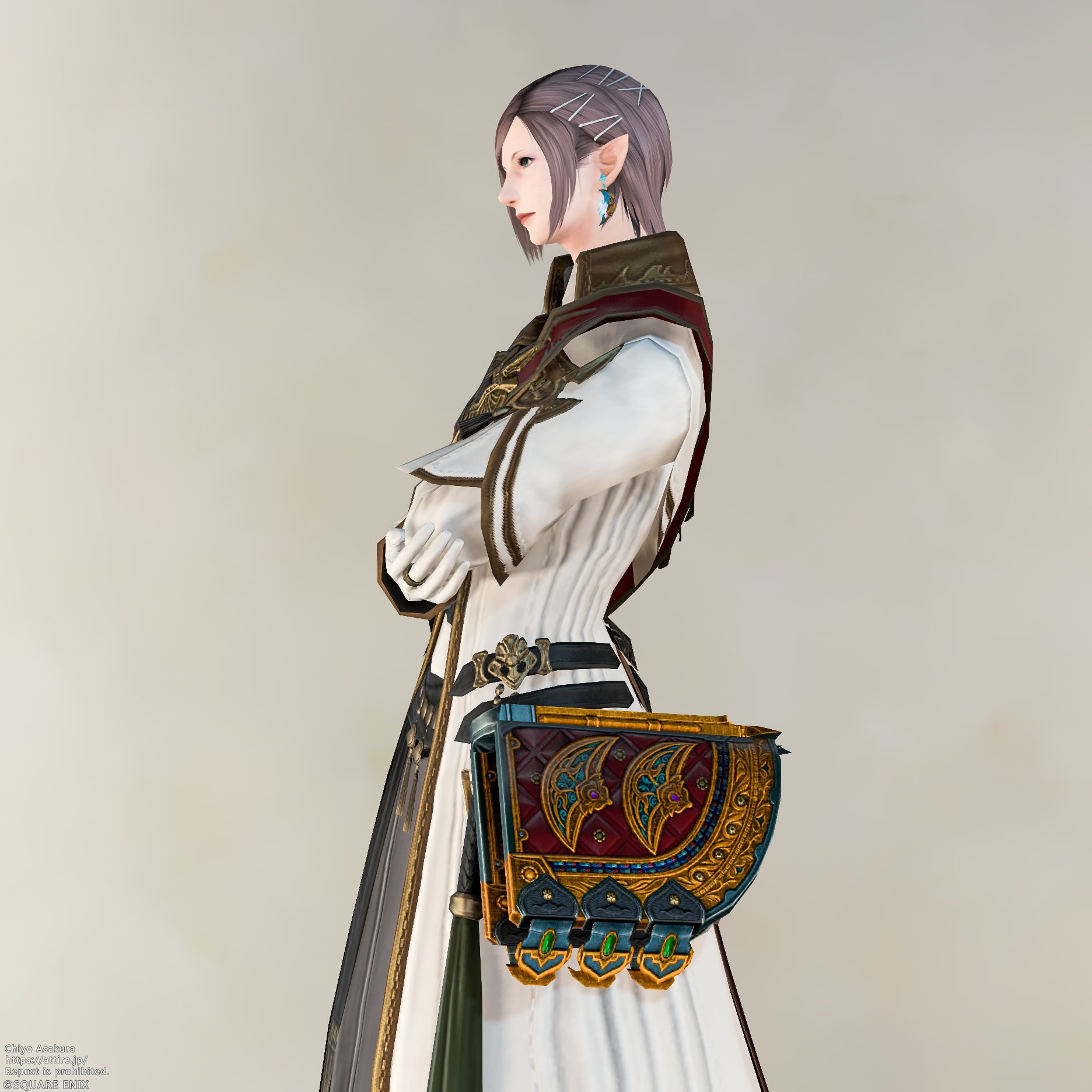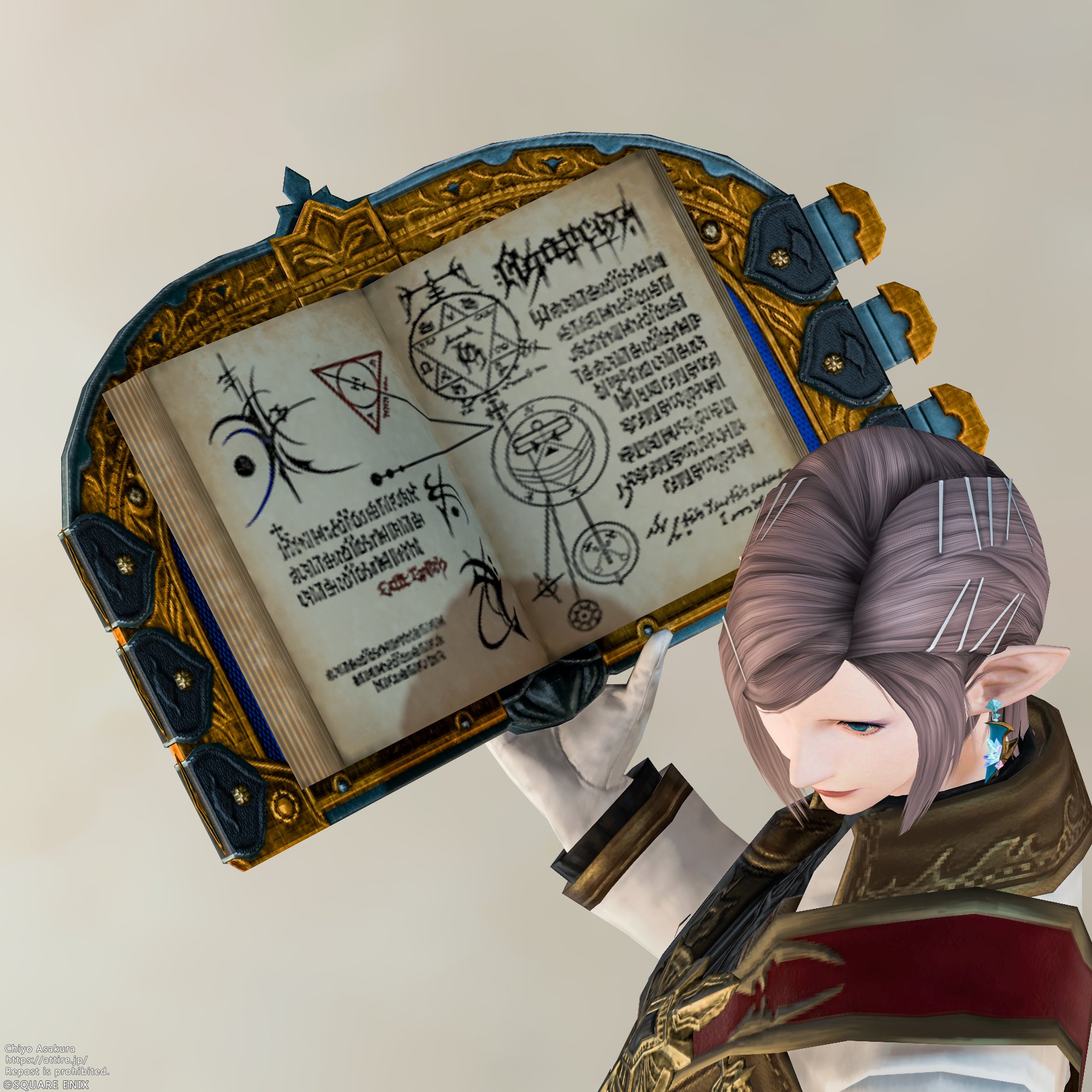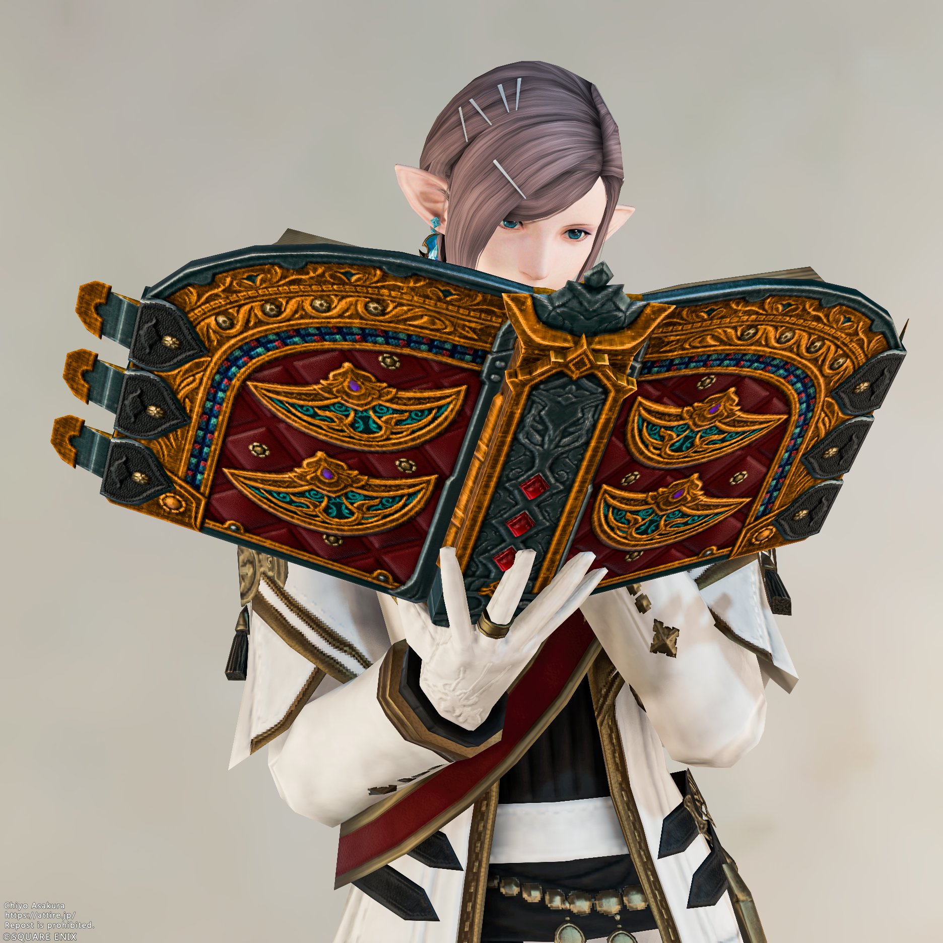 2026.01.09 セレモニアル・グリモア chiyo Eorzea Databaseアイテム情報 Lv100 IL740 セレモニアル・グリモア Ceremonial Grimoire 入手方法 マーケット取引可能 抜刀ギミック 無し 染色 ✕ 種類 グリモア魔紋:Type3 Weapons of the same design同デザイン武器 Set of Armorセット防具 Twitterでシェアする ABOUT ME chiyo装備蒐集家XYouTubeContactエレゼンに装備を着せることが大好きです。