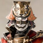 「降神祭」を記念して、寅をモチーフにし作られた変わり兜です。 東方の民に愛された意匠と色彩をベースに、頭を覆う鉢には勇敢で力強い虎の装飾を施しました。